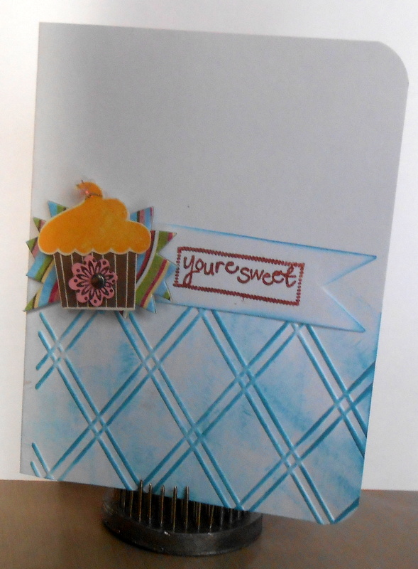 I made this card today for a couple of challenges today... I had this cute cupcake for a while that I wanted to use.  I got it from my friend Anne in a swap.  She used her Cricut Imagine to make me some embellishments.